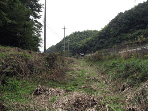 写真の奥に見える道が国道9号線。手前に伸びるのは