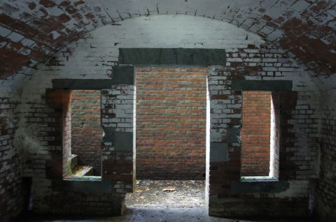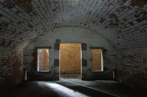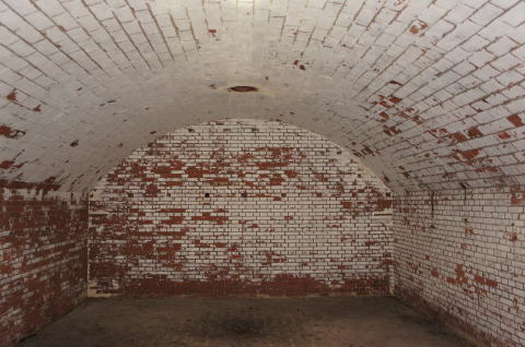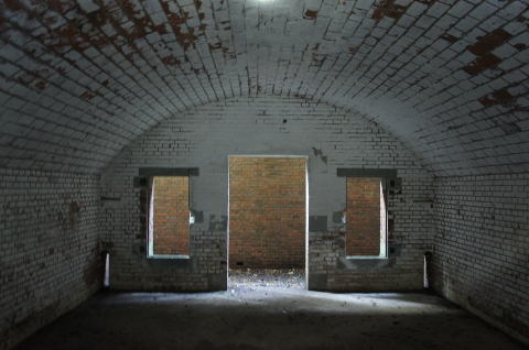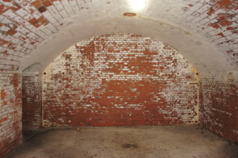 欠円アーチの部屋。。。アーチ部分はコンクリートで補修?されていますが、当時は煉瓦アーチだったんではないでしょうか。