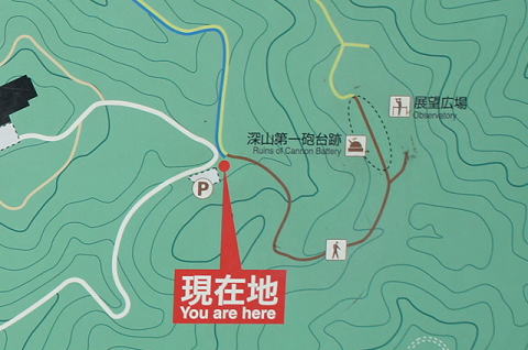 そこから茶色のルートを歩けば砲台跡はすぐで