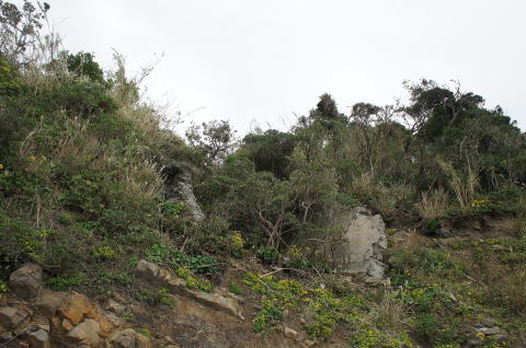 上部の空間はどうやら砲座のようです。 が、現在は植生が酷く、深山第一砲台のよう に跡を確認できません。 |