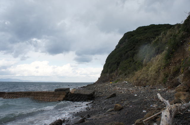 ![]() 振り返り。こうしてみると、石積みの突堤しか確認できませんな。。。 海辺はこの辺にして砲台跡に戻りましょう。 |