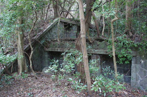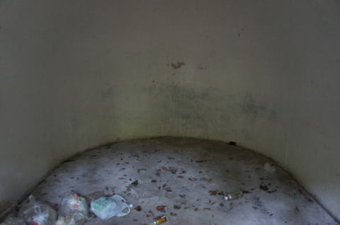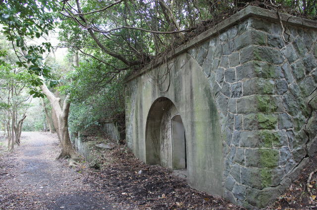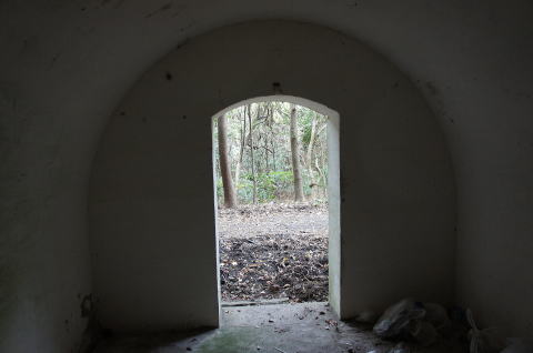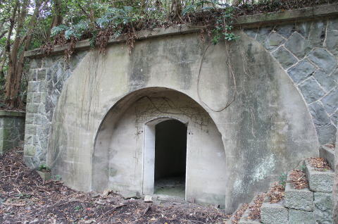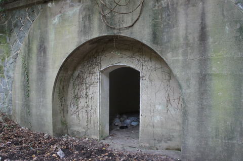 ![]() すると目の前に棲息掩蔽部が。 この男良谷の棲息掩蔽部は石積みでできています。深山第一砲台の煉瓦造りとは全く異なりますなあ。 アーチ部分は分厚いコンクリート製です。これは当初から煉瓦アーチではなかった気がします。 |