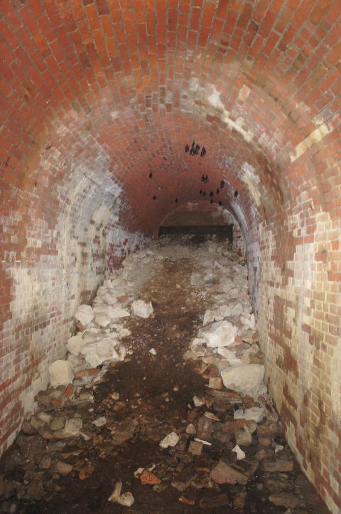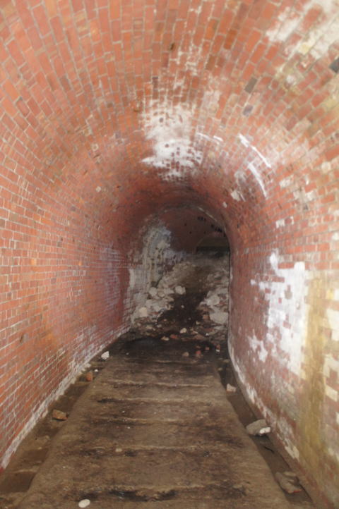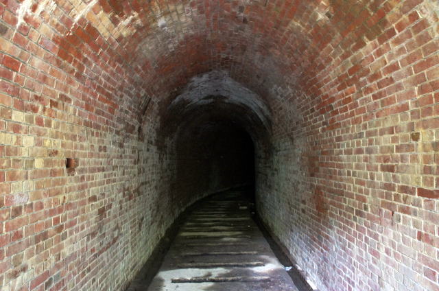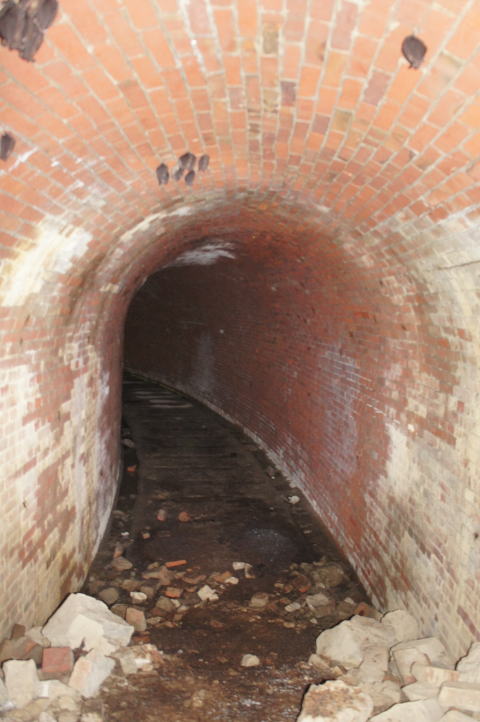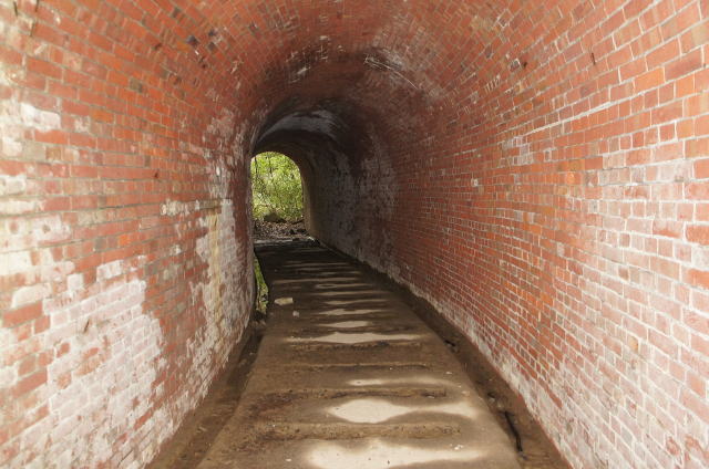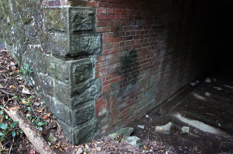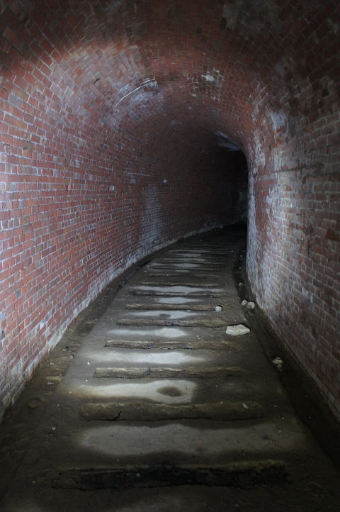 ![]() そして内部。 整然と煉瓦が並びます。そして一般的な煉瓦隧道と同じパターン、側壁イギリス積み、アーチ長手積みです。 床面がなんか変わってます。そして洞内は右に。。。 |
